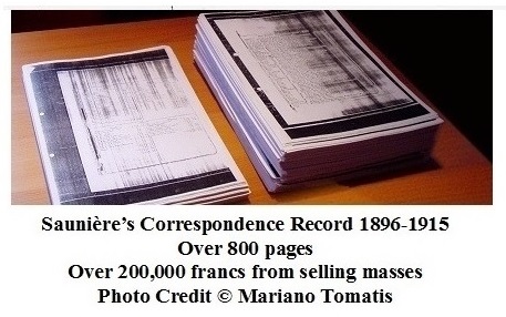 It really is very easy to understand – Bérenger Saunière got over 200,000 francs from trafficking in masses between 1896-1915 and the evidence exists in Saunière’s own handwriting (below). This explains his activities and consigns all the “mysteries” and “treasures” into the trashcan.
