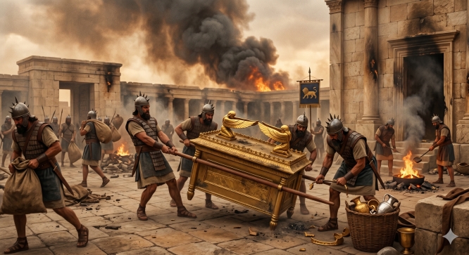 Here is the most likely factual account – King Nebuchadnezzar II of Babylon took the Ark of the Covenant as Spoils of War when he captured Jerusalem in 586 BCE – and used it as a latrine prior to melting it down for the gold. This is the most likely version of events.