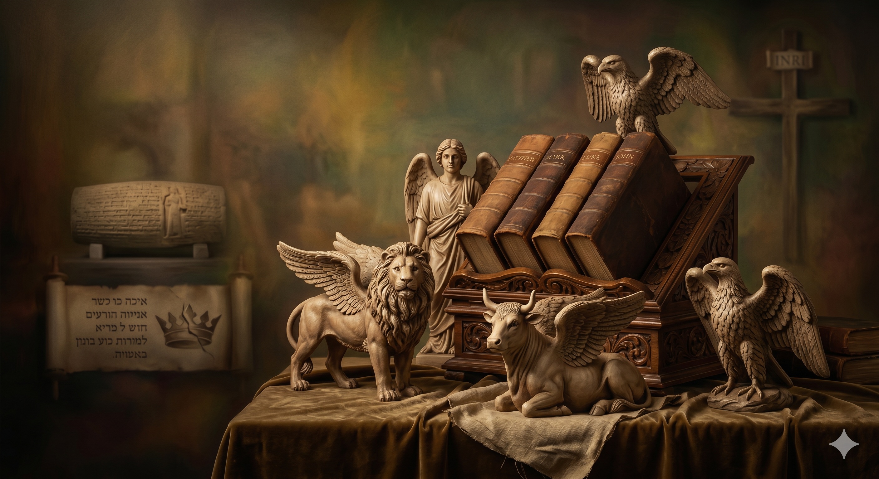 The Book of Ezekiel is firmly entrenched as being the starting point of Christianity, along with the Books of Daniel and I Enoch. The four creatures as described in the opening chapter of Ezekiel occupying the Throne-Chariot – having the face of a man, a face of a lion, a face of a bull, and a face of an eagle – just happened to correspond with the four Christian evangelists of Matthew, Mark, Luke and John.