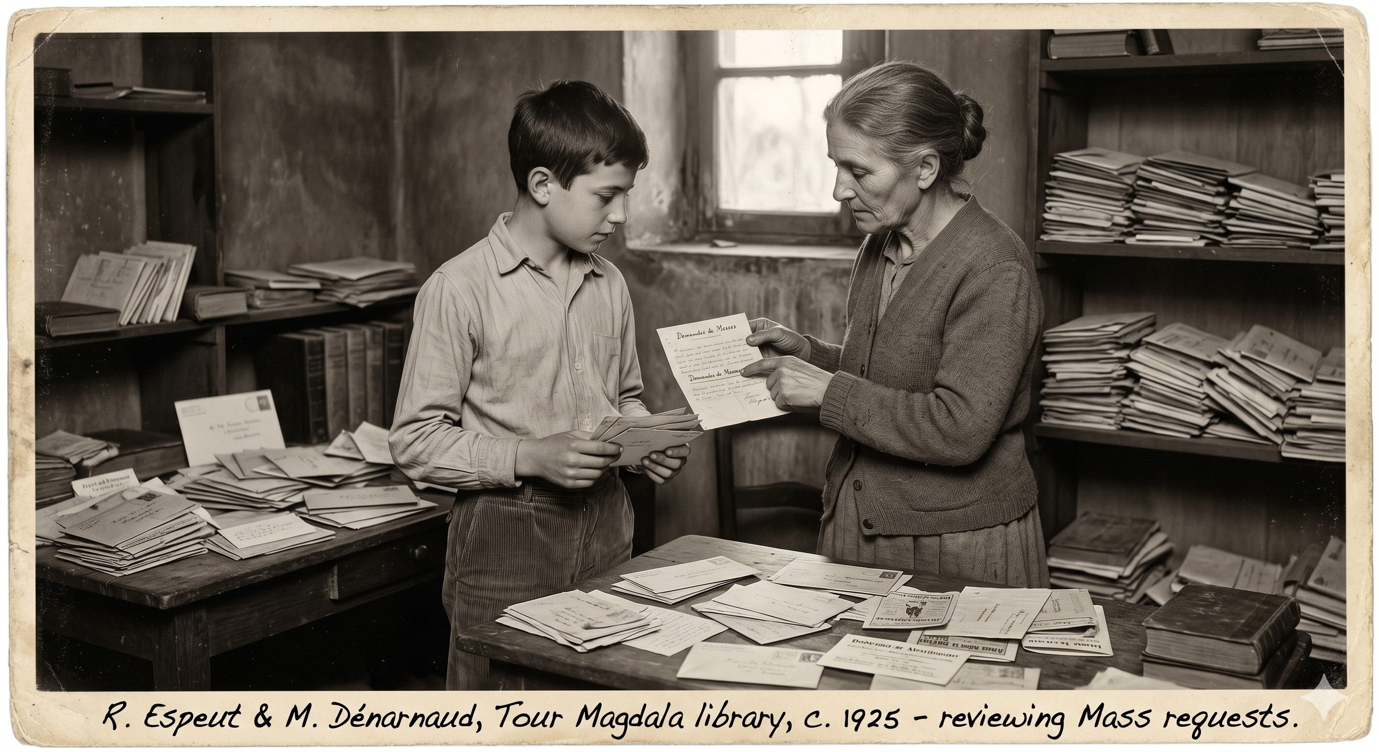 “...I would like to state that the Abbé Saunière never found any treasure. You see, I was actually born in Espéraza. My family knew the Dénarnaud family. In 1925, when I was 14 years old, I used to go up regularly to Rennes-le-Château. I used to go and see Marie Dénarnaud. She was living in rather pitiable circumstances. I did my harmony lessons on the organs in the salon, which have now disappeared. In the library of the Tour Magdala, I read all the correspondence of the priest with his ecclesiastical lawyer at the time of his trial at the court of Rome. It was by collecting money for saying masses that the Abbé Saunière was able to construct his estate. He published small ads in the Catholic press throughout the world. I was able to read their texts, and I have seen thousands of replies. I would also like to state that, between the ages of 15 and 20, I thoroughly searched the area within a 500-metre radius of the Villa and the Tour Magdala. I never found the slightest evidence of a hidden treasure. I am telling you this out of respect for the truth...” (Midi Libre, 13 February 1973)